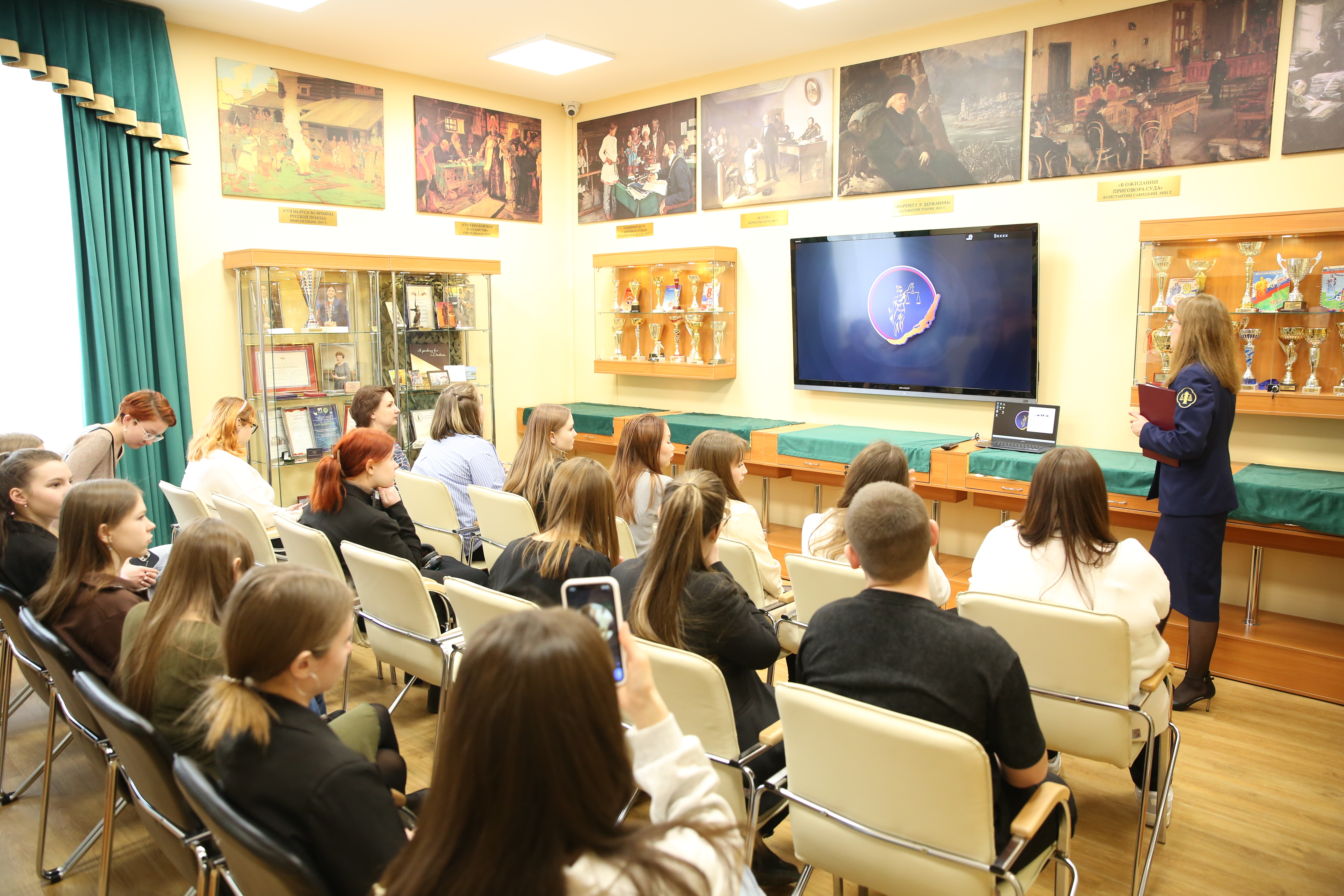 Обновленный раздел «История судебной системы периода Великой Отечественной войны» входит в экскурсионную программу музея. В музейном пространстве представлена информация о вкладе в Победу судей и сотрудников, которые ушли на фронт, пройдя через горнило самой кровопролитной войны прошлого века, а также служителей Фемиды, которые самоотверженно трудись в тылу на благо Отечества в тяжелые военные годы. В Иркутском областном суде бережно хранят память о фронтовиках и тружениках тыла, чья жизнь – образец истинного мужества, героизма и преданности Родине. Заместитель председателя Иркутского областного суда Светлана Алексеевна Черткова подчеркнула важность сохранения памяти о героях войны и поделилась планами по дальнейшему исследованию и популяризации этой темы. - Мы приложили много усилий и провели большую исследовательскую работу, порой буквально по крупицам собирая информацию и ранее неизвестные факты о судьбах наших героев. Но на достигнутом останавливаться не будем, и работа будет продолжена. Мы должны сделать всё, что в наших силах, чтобы подвиг народа-победителя, который в едином порыве встал на защиту Родины, помнили и чтили будущие поколения, - отметила Светлана Алексеевна. Первыми, кто ознакомился с новой экспозицией, стали студенты 2 курса Иркутского техникума экономики и права - 13 марта привычные лекции и семинары студентов сменились познавательной экскурсией в здании Иркутского областного суда. Гости смогли окунуться в атмосферу правосудия прошлых столетий и своими глазами увидеть, как развивалась судебная система нашего региона. Ребята рассматривали старинные рукописи, редкие книги и архивные материалы, знакомились с историей легендарных юристов Иркутской области, чьи идеи и деятельность оставили неизгладимый след в истории права. Особое внимание было уделено новой экспозиции, посвященной 80-летию Победы в Великой Отечественной войне. В музее представлены материалы о судьях и сотрудниках, которые сражались на фронте и работали в тылу ради победы. Музей суда вызвал неподдельный интерес у будущих юристов. Такие мероприятия способствуют воспитанию уважения к историческому наследию и формированию чувства ответственности перед будущими поколениями.