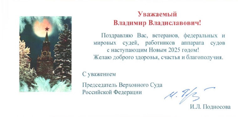 Поздравление с наступающим Новым годом от председателя Верховного Суда Российской Федерации И.Л. Подносовой ![]() ![]() |
